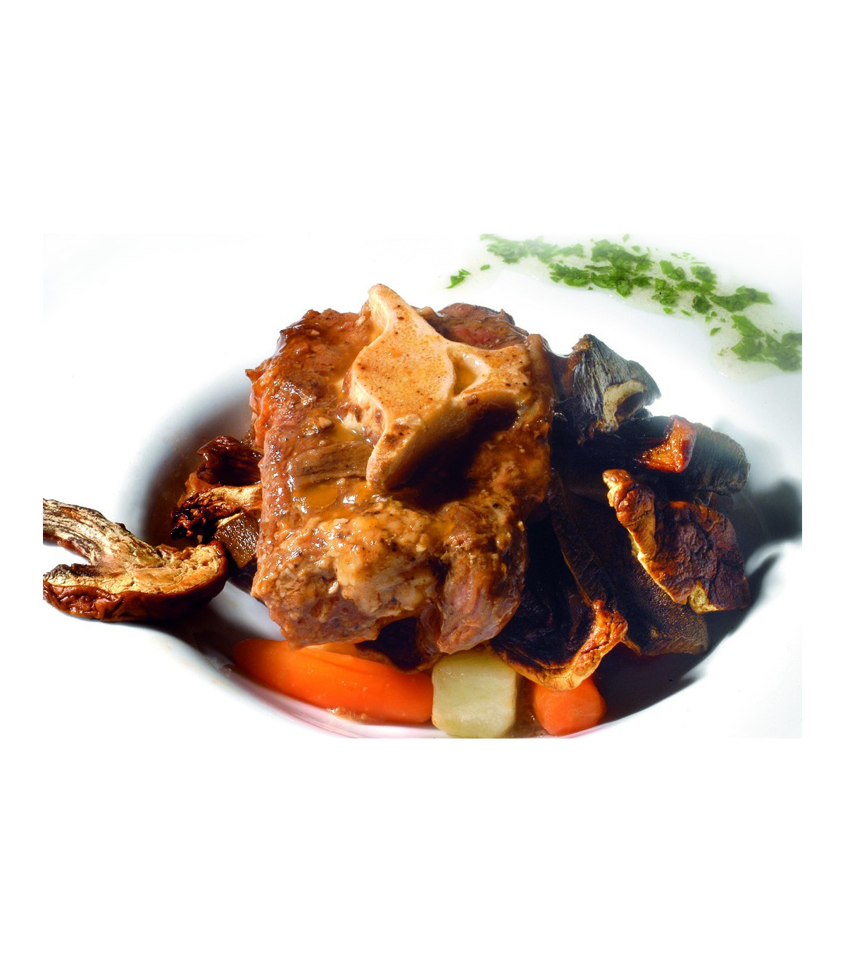 Rabo de toro (71%), sofrito (14%): (cebolla, tomate, puerro, azúcar, aceite de oliva virgen extra, sal, almidón modificado de maíz, potenciador de sabor (E-621), acidulante (E-330) y ajo); agua, sal, harina de arroz, almendras, avellanas, vino (sulfitos), zanahoria, puré de patata (sulfitos,trazas de lactosa y soja),setas boletus (boletus edulis): (1%) y especias.